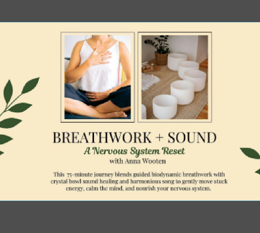 Settle in, slow down, and gently reset your entire system in this 75-minute breathwork and sound healing experience designed to calm your mind and restore balance to your nervous system. This journey blends very activating biodynamic breathwork with a deeply soothing crystal bowl sound bath to help you release tension, soften stress, and return to a more centered, grounded state of being.