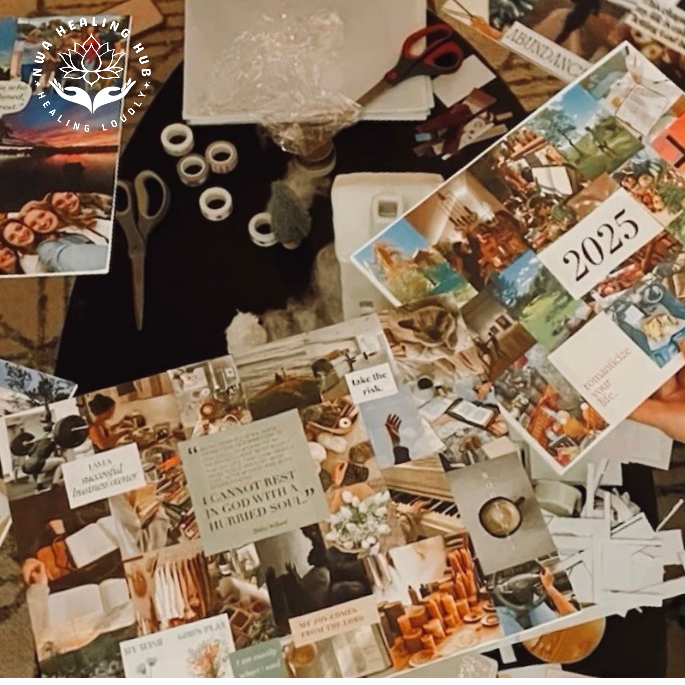 A restorative, intention-filled evening blending sound healing, future-self visualization, and guided vision board creation.
